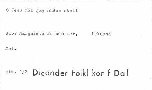 //// O Jesu när jag hädan skall //// Jobs Margareta Persdotter, Leksand //// Mel. //// sid. 132 Dicander Folk! kor f Da! ////