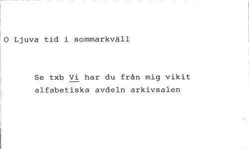 //// O Ljuva tid i sommarkväll //// Se txb Vi har du från mig vikit alfabetiska avdeln arkivsalen ////