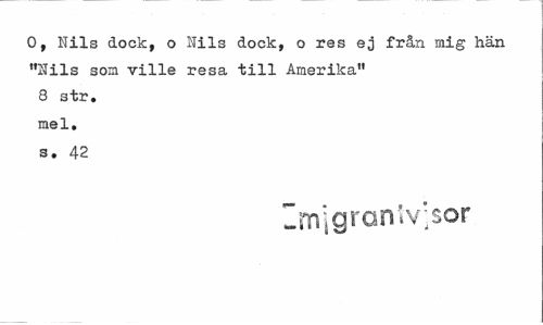 //// O, Nils dock, o Nils dock, o res ej från mig hän "Nils som ville resa till Amerika" 8 str. mel. s. 42 //// Imigronlv;sor ////