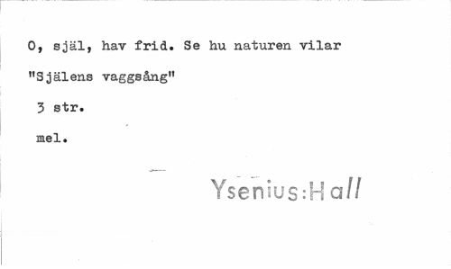//// O, själ, hav frid. Se hu naturen vilar "Själens vaggsång" 3 str. mel. //// Ysenius:H all ////