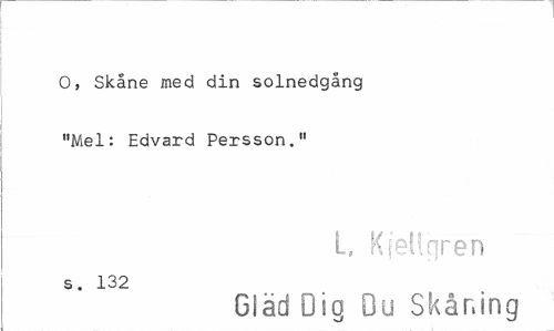 //// O, Skåne med din solnedgång "Mel: Edvard Persson." //// L, Kfeligren //// s. 132 //// Gläd Dig Du Skåning ////