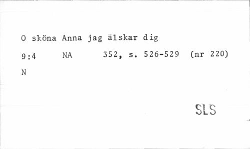 //// O sköna Anna jag älskar dig //// 9.4 NA 352, s. 526-529 (nr 220) //// N //// SIS ////