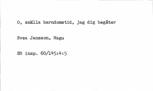 //// O, snälla barndomstid, jag dig begåter Svea Jansson, Nagu SR insp. 60/145:4:5 ////
