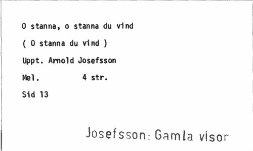 //// O stanna, o stanna du vind ( 0 stanna du vind ) Uppt. Arnold Josefsson Mel. 4 str. //// Sid 13 //// Josefsson.- Gamla visor ////