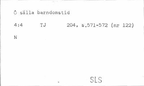 //// ö sälla barndomstid //// 4:4 TJ 204, s.571-572 (nr 122) //// N //// SLS ////