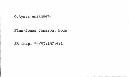 //// O,tysta ensamhet. Finn-Jonas Jonsson, Boda SR insp. 54/45:157:4:1 ////