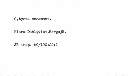 //// O,tysta ensamhet. Klara Dahlqvist,Bergsjö. SR insp. 60/120:22:1 ////