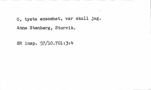 //// O, tysta ensamhet, var skall jag. Anna Stenberg, Storvik. //// SR insp. 57/10.701:3:4 ////
