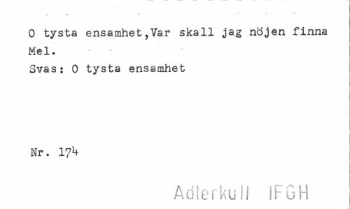 //// O tysta ensamhet,Var skall jag nöjen finna Mel. //// Svas: O tysta ensamhet Nr. 17*+ //// Adlerku II IFGH ////