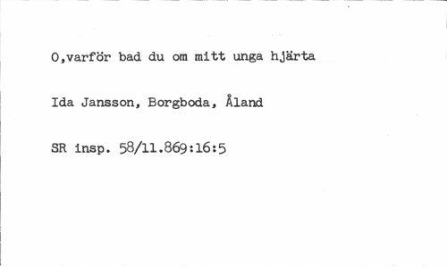 //// O,varför bad du om mitt unga hjärta Ida Jansson, Borgboda, Åland SR insp. 58/11.869:16:5 ////