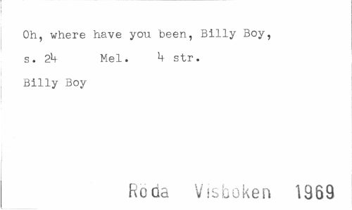 //// Oh, where have you been, Billy Boy, s. 2b Mel. k str. //// Billy Boy //// Ro Gä Visboken 1969 ////