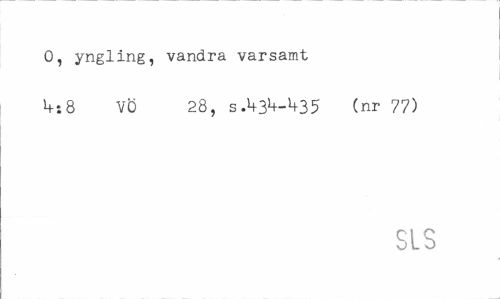 //// O, yngling, vandra varsamt //// V:8 VÖ 28, s.^3^35 (nr 77) //// SIS ////