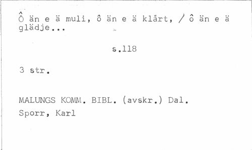 //// A ^ ^ //// Ö än e a muli, 6 än e ä klart, / o än e ä glädje ... //// s .118 //// 3 str. //// MALUNGS KOMM. BIBL. (avskr.) Dal. Sporr, Karl ////