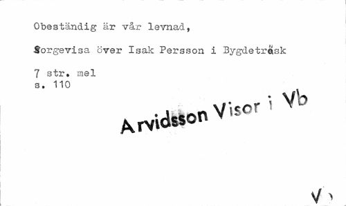 //// Obeständig är vår levnad, //// Sorgevisa över Isak Persson i Bygdeträsk //// 7 str. mel s. 110 //// MvidssonVUor'^ ////