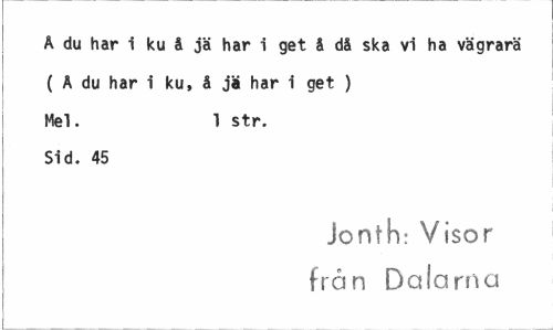 //// A du har i ku å jä har i get å då ska vi ha vägrarä ( A du har i ku, å jä har i get ) Mel. 1 str. //// Sid. 45 //// Jonth: Visor //// från Dalarna ////