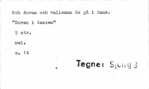 //// Och duvan och valleman de gå i dans. "Duvan i dansen" 2 str. niel» s. 14 //// Tegnei S|bny3 ////