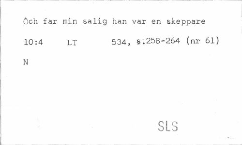 //// öch far min salig han var en skeppare 10:4 LT 534, s.258-264 (nr 61) //// N //// SLS ////