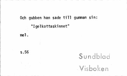 //// Och gubben han sade till gumman sin: "Igelkottaskinnet" //// mel. s.56 //// Sundblad //// Visboken ////