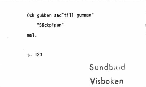 //// Och gubben sacTtill gumman" "Säckpipan" //// mel. s. 120 //// Sundblad //// Visboken ////