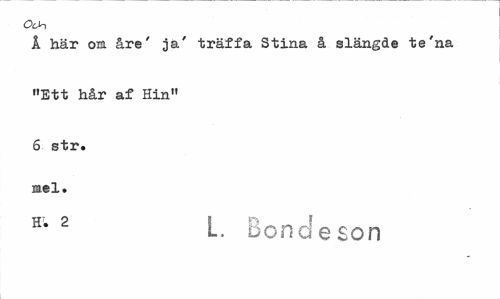 //// Och //// k här om åre' ja' träffa Stina å slängde te'na //// »Ett hår af Hin" //// 6 str. mel. //// H* 2 L Bondeson ////