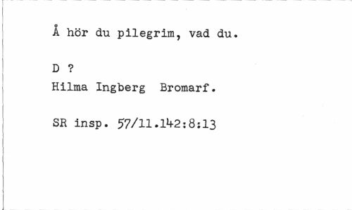 //// Å hör du pilegrim, vad du. D ? //// Hilma Ingberg Bromarf. SR insp. 57/11.1^2:8:13 ////