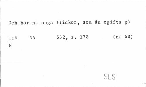 //// Och hör ni unga flickor, som än ogifta gå //// 1:4 NA 352, s, 173 (nr 60) //// N //// SLS ////