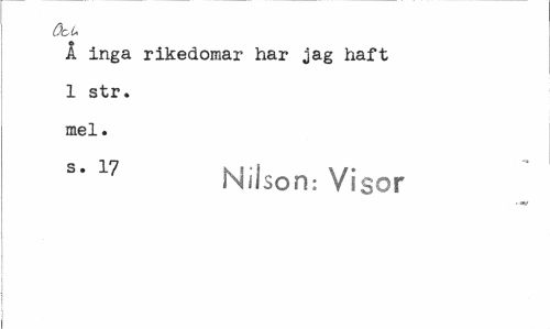 //// OoU //// A inga rikedomar har jag haft 1 str. mel. //// s* 17 Nilson: Visor ////