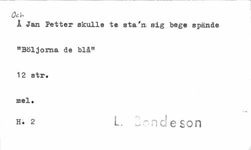 //// ÖcU //// k Jan Petter skulle te sta'n. sig bege spände "Böljorna de blå" 12 str. mel. //// h. 2 L. ncl eson ////