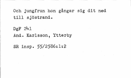 //// Och jungfrun hon gångar sig dit ned till sjöstrand. //// DgF 2bl //// And. Karlsson, Ytterby SR insp. 55/2586:1:2 ////