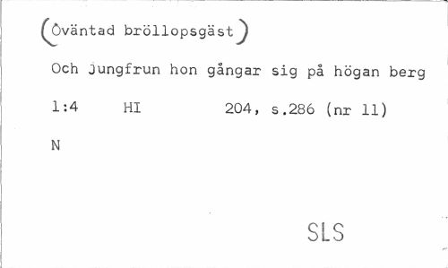 //// ^Oväntad bröllopsgäst^ Och Jungfrun hon gångar sig på högan berg 1:4 Hl 204, s.286 (nr 11) //// N //// SLS ////