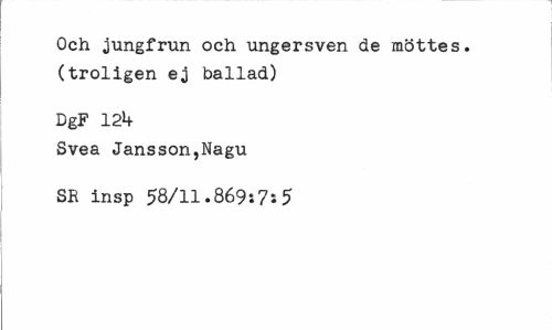 //// Och jungfrun och ungersven de möttes, (troligen ej ballad) //// DgF 12b //// Svea Jansson,Nagu SE insp 58/11.869'.7: 5 ////