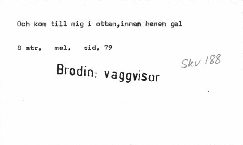 //// Och kom till mig i ottan,innan hanen gal 8 str. mel, sid. 79 //// Bron- ^m //// Brodin. vaggvisor ////