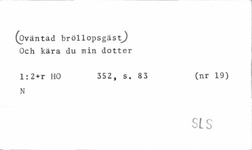 //// (oväntad bröllopsgäst} Och kära du min dotter //// 1:2+r HO 352, s. 83 (nr 19) //// N //// SLS ////