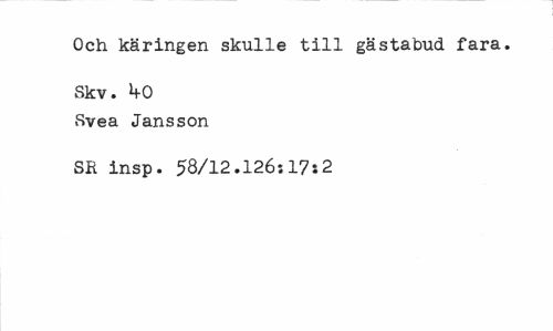 //// Och käringen skulle till gästahud fara. //// Skv. ifO Svea Jansson //// SR insp. 58/12.126:17:2 ////