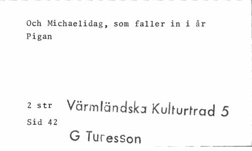 //// Och Michaelidag, som faller in i år Pigan //// 2 str Värmländska Kulfurfrad 5 //// Sid 42 //// G Turesson ___ ////