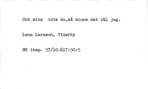 //// Och mins inte du,så minns det väl jag. Lena Larsson, Ytterby SR insp. 57/10.617:50:5 ////