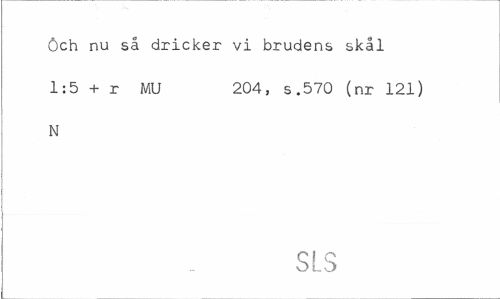 //// Öch nu så dricker vi brudens skål 1:5 + r MU 204, s.570 (nr 121) //// N //// SLS ////