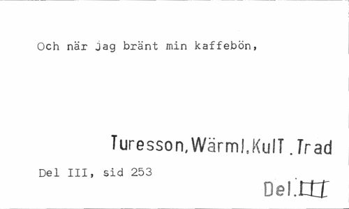 //// Och när Jag bränt min kaffebön, //// Turesson,Wärml.KulT .Trad //// Del III, sid 253 //// DeliH ////