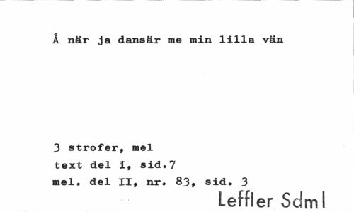 //// Å när ja dansar me min lilla vän //// 3 strofer, mel //// text del I, sid.7 //// mel. del II, nr. 83, sid. 3 //// Leffler Sdml ////