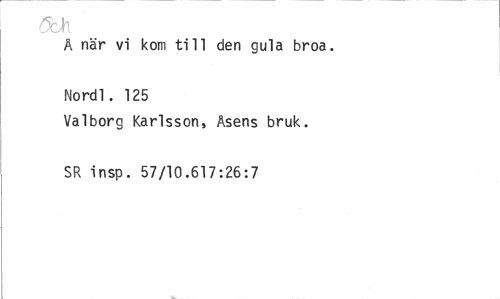 //// Och //// Å när vi kom till den gula broa. Nordl. 125 //// Valborg Karlsson, Äsens bruk. SR insp. 57/10.617:26:7 ////