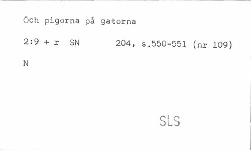 //// öch pigorna på gatorna //// 2:9 + r SN 204, s.550-551 (nr 109) //// N //// SLS ////