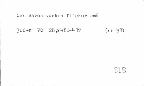 //// Och Savos vackra flickor små //// 3:6+r VÖ 28 ,sl+86->+87 (nr 98) //// SIS ////