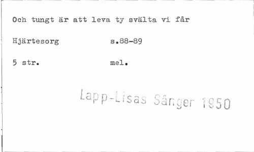 //// Och tungt är att leva ty svälta vi får Hjärtesorg s.88-89 //// 5 str. mel. //// f-app-Lfsas Sångei tQ50 ////
