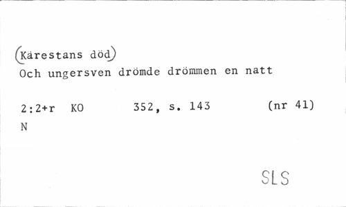 //// (Kärestans död) //// Och ungersven drömde drömmen en natt //// 2:2+r KO 352, s. 143 (nr 41) //// N //// SLS ////