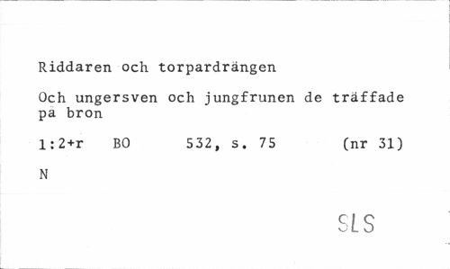 //// Riddaren och torpardrängen //// Och ungersven och jungfrunen de träffade pa bron //// 1:2+r BO 532, s. 75 (nr 31) //// N //// SLS ////