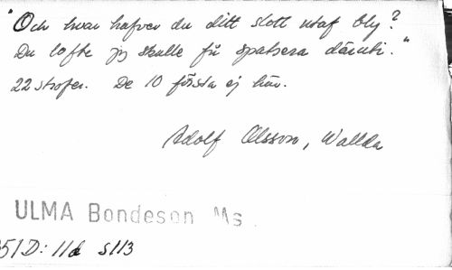 //// d&^vrw Sf^Z' M/it^ . 1 //// /V fets/*, a? i^o. //// ULMA Bondeson //// S//3 ////
