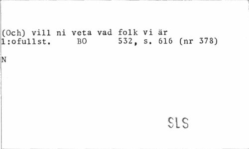 //// (Och) vill ni veta vad folk vi är 1:ofull st. BO 532 , s. 616 (nr 378) //// N //// SIS ////