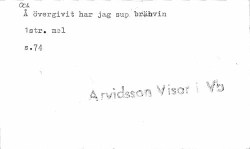 //// Å övergivit har jag sup, brähvin 1str. mel //// s.74 //// Arvid»®* Visor i Ha ////