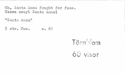//// Oh, Santa Anna fought for farae. Heave awayi Santa Annai //// "Santa Anna" //// 5 str. Mus. s. 68 //// Törnblom 60 visor ////