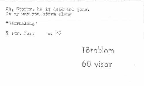 //// Oh, Stormy, he is dead and gone. To my way you storm along //// "Stormalong" //// 5 str. Hus. s. 76 //// T- M //// I ornoiom 60 visor ////